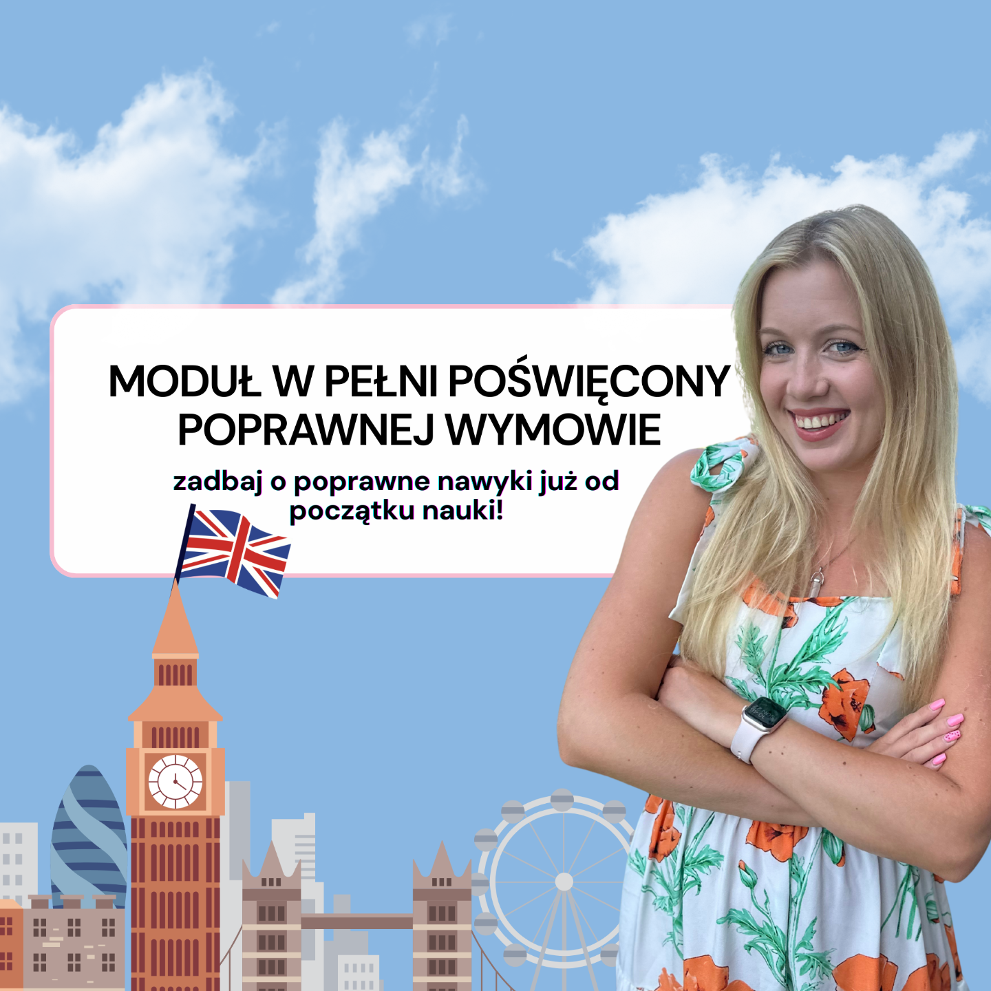 W ramach kursu otrzymujesz również dodatkowy moduł poświęcony wymowie, dzięki któremu od samego początku nauki zbudujesz dobre nawyki językowe. Dowiesz się, jak poprawnie wymawiać trudniejsze dźwięki, jakie pułapki najczęściej spotykają osoby uczące się angielskiego. Ten moduł sprawi, że nauka stanie się łatwiejsza, a Twoje postępy w komunikacji będą zauważalne już od pierwszych lekcji.